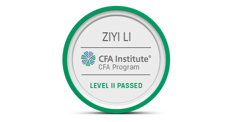 The owner of this badge has passed Level II of the CFA Program. By passing all three of the CFA Program exams and gaining relevant industry experience, candidates demonstrate their mastery of the ethical, analytical, and decision-making skills most needed in the global investment management profession. The CFA credential is the most respected and recognized investment designation in the world with more than 150,000 charterholders globally.