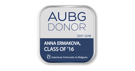The AUBG Donor badge certifies that its holder has made at least one contribution to AUBG in the period, July 1, 2017- June 30, 2018.