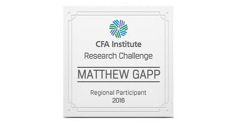 The CFA Institute Research Challenge is an annual global competition that provides university students with hands-on mentoring and intensive training in financial analysis. Students gain real-world experience as they assume the role of a research analyst and are tested on their ability to value a stock, write an initiation-of-coverage report, and present their recommendations.