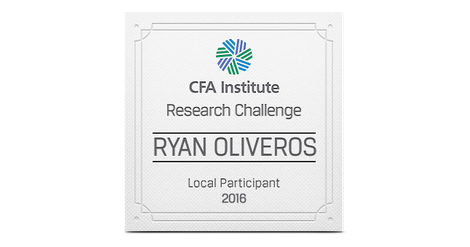 The CFA Institute Research Challenge is an annual global competition that provides university students with hands-on mentoring and intensive training in financial analysis. Students gain real-world experience as they assume the role of a research analyst and are tested on their ability to value a stock, write an initiation-of-coverage report, and present their recommendations.