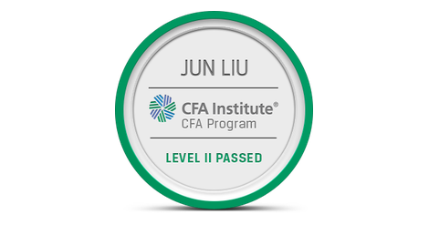 The owner of this badge has passed Level II of the CFA Program. By passing all three of the CFA Program exams and gaining relevant industry experience, candidates demonstrate their mastery of the ethical, analytical, and decision-making skills most needed in the global investment management profession. The CFA credential is the most respected and recognized investment designation in the world with more than 150,000 charterholders globally.